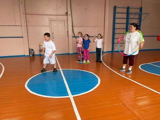 Тренировки проводятся с ребятишками д/сада «Лучик», и со школьниками.