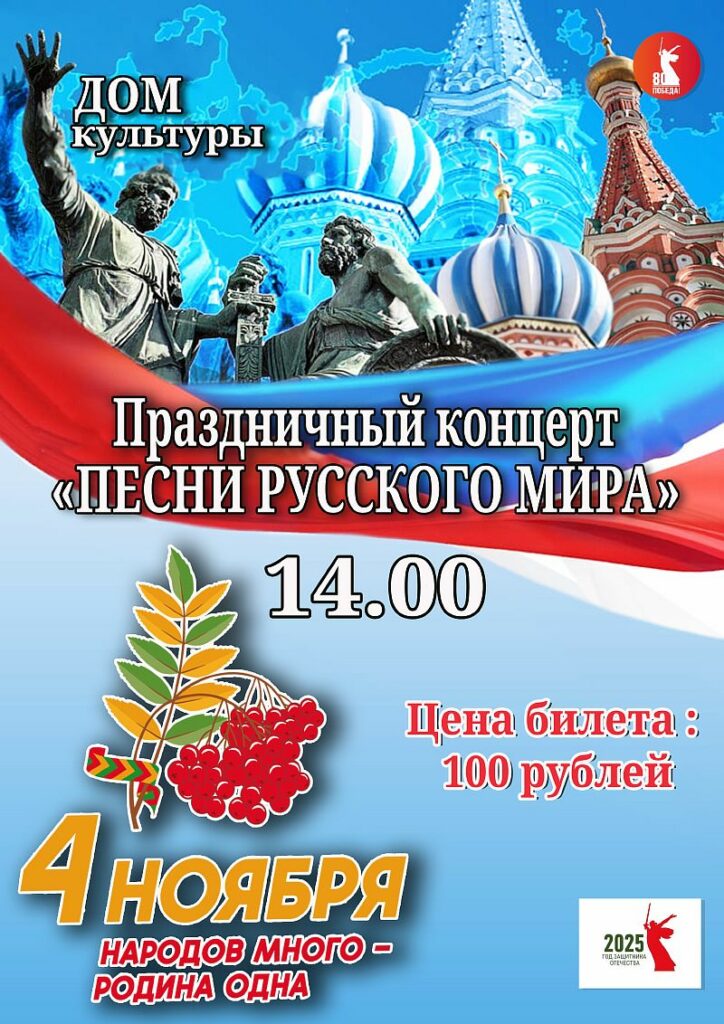 В этот знаменательный день, посвященный Дню народного единства, мы собрали для вас программу, наполненную душевными мелодиями и любимыми песнями, которые объединяют нас всех. Это будет день, пропитанный гордостью за нашу историю, культуру и, конечно же, единство! Когда: 4 ноября