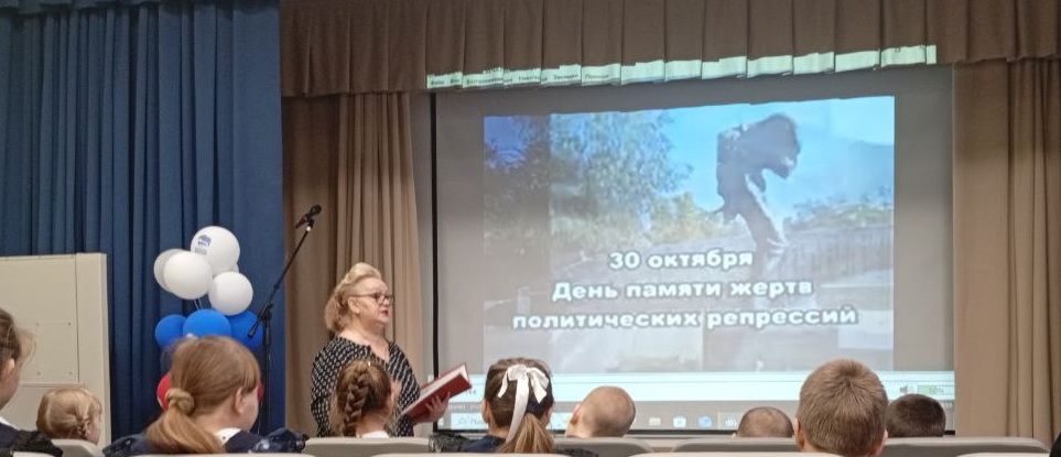 Специалист Дома культуры п. Первомайск провела тематическую программу для учащихся 1-11 классов «Памяти погибших в годы репрессий». В ходе мероприятия ребята узнали, что такое репрессия, о том, что этот день – напоминание нам о трагических страницах в истории России, когда тысячи людей были необоснованно подвергнуты репрессиям, обвинены в преступлениях, отправлены в исправительно-трудовые лагеря, лишены жизни, о том, как и за что, люди попадали в эти лагеря. Присутствующие узнали, какая судьба была у детей, осужденных родителей, их тоже считали «врагами народа» и отправляли в спецприёмники. Ребята узнали о раскулачивании. Поговорили о важности сохранения исторической правды. Для того чтобы такие трагедии не повторялись, о них необходимо знать и помнить, чтобы извлечь уроки. В завершении все почтили память безвинно погибших минутой молчания.