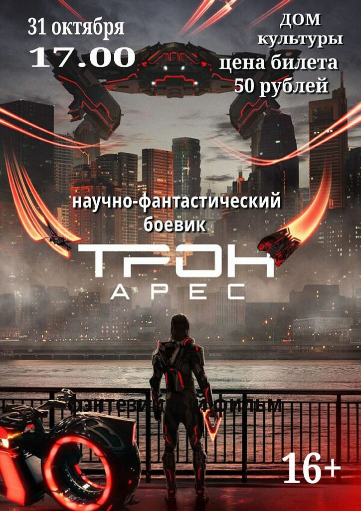 31 октября в 17:00 вас ждет головокружительный научно-фантастический боевик «Трон: Арес»! Погрузитесь в мир цифровых реальностей, захватывающих гонок и эпических сражений.