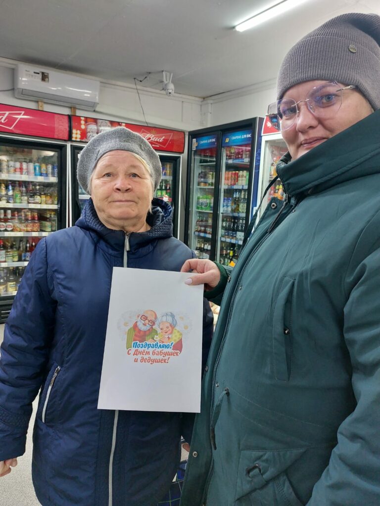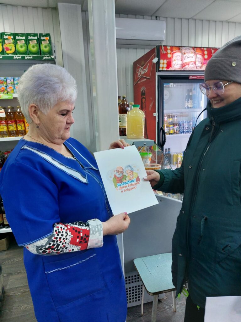 провели акцию и вручили открытки, поздравив старшее поколение с