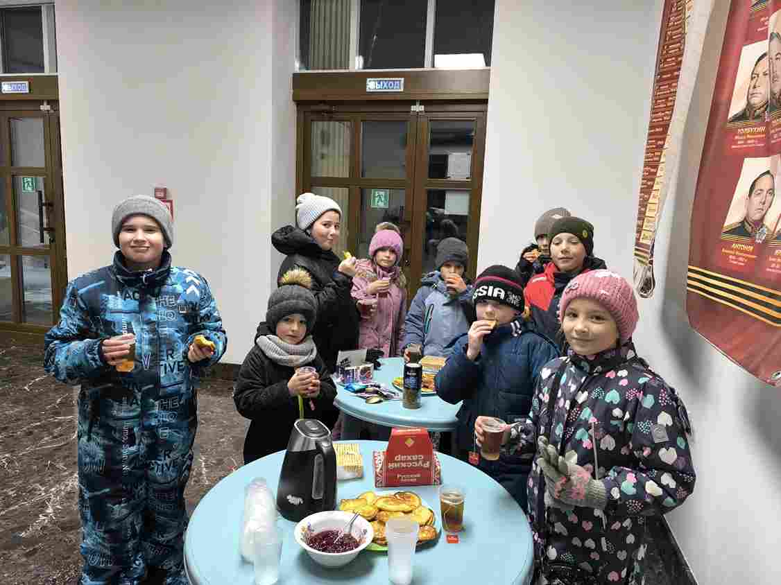 После активного и весёлого творчества гостей пригласили в уютное помещение, где все собрались за столом на тёплый чай. Особое угощение — ароматные оладушки, приготовленные нашими молодыми #поварятами — придало мероприятию домашний и тёплый характер.