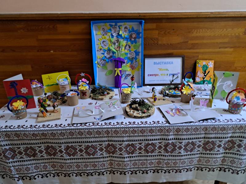 Завершилось мероприятие оформлением выставки «Мама, смотри, что я умею!». Ребята с гордостью демонстрировали свои поделки, посвященные любимым мамам.