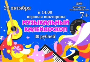 Дорогие ребята! Дом культуры с радостью объявляет о старте увлекательной игровой викторины, которая подарит вам море позитивных эмоций и новых музыкальных открытий! «Музыкальный калейдоскоп» – это не просто викторина, а настоящее путешествие в мир звуков, ритмов и мелодий! Вас ждут интересные задания, веселые конкурсы и, конечно же, возможность проверить свои знания в области музыки в …
