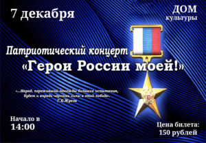 Дорогие жители и гости поселка! Приглашаем вас на патриотический концерт «Герои России моей», который состоится 7 декабря в 14:00 в нашем Доме культуры. Этот концерт посвящен Дню героев Отечества и станет замечательной возможностью отдать дань уважения тем, кто проявил мужество и героизм в служении Родине. Мы подготовили для вас яркую программу с выступлениями …